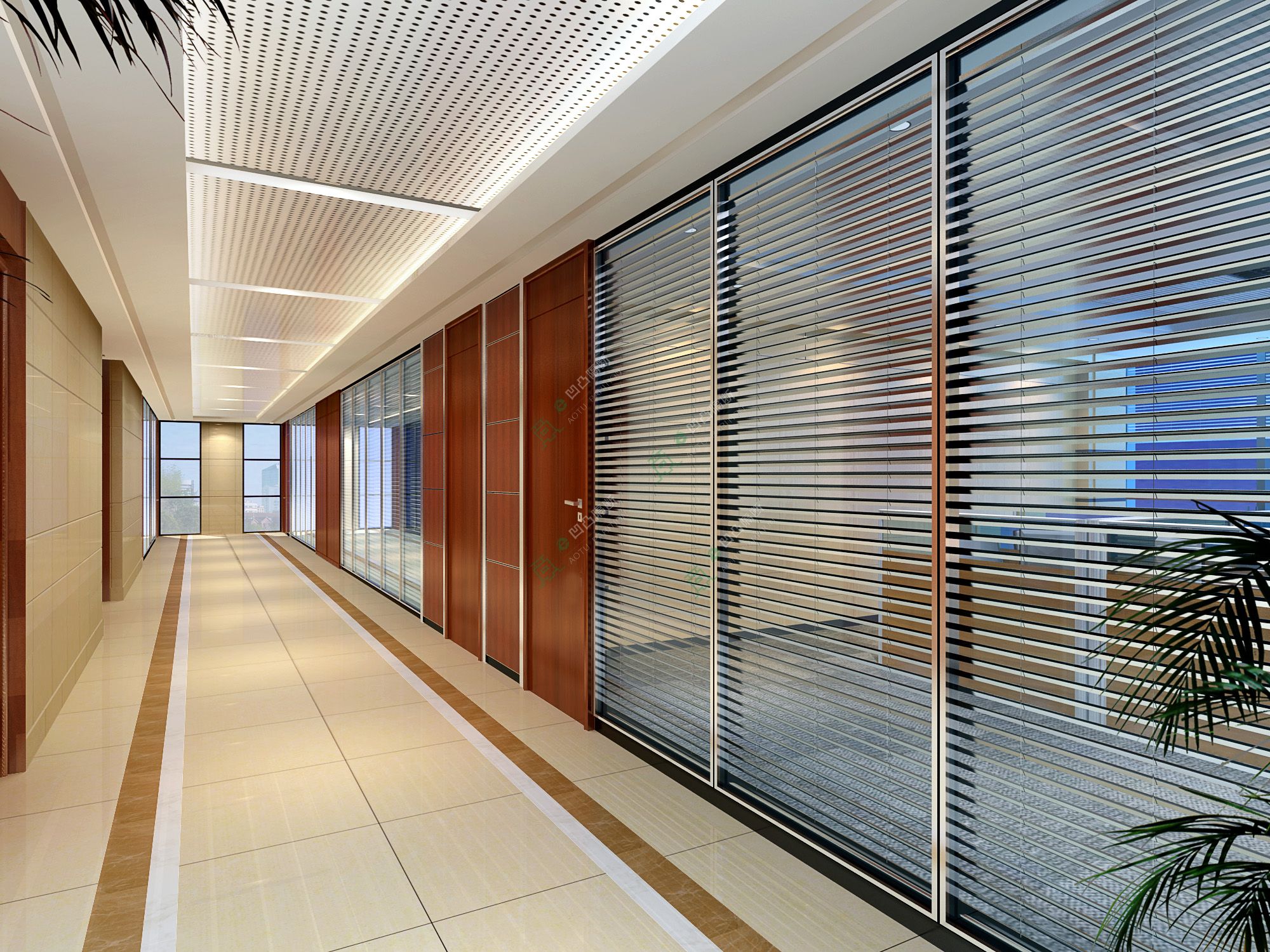 1、雙層玻璃夾百葉隔斷效果圖一:可以很好地保護用戶的隱私