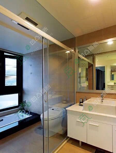 玻璃隔斷效果圖:整個衛生間將以玻璃材質的隔斷一分為二,使之增加了整個空間的實用性。