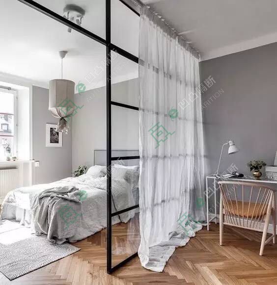 但是房屋的面積總共就這么大,如果全部做成水泥墻+門,就得白白浪費掉不少實用面積。對于某些戶型結構不是那么好的房子來說,墻壁的存在更有可能會犧牲掉某個區域的自然光。在這種情況下,當我們仍然想讓每個家庭成員都有一點獨立空間的時候,“玻璃隔斷”可能會是我們解決問題的辦法。