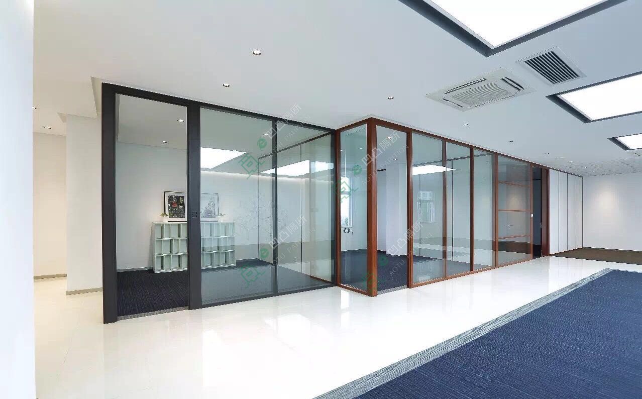 玻璃隔斷無污染異味排放,裝后可馬上可以使用。門框內側預裝有密封條,隔聲效果及密封性提高。更可加裝門底密封條,使隔音系統完成無缺。進口玻璃門鎖可安裝在中部,使用起來極其方便。高質量的進口百葉簾片可安裝在兩層玻璃內部,不容易臟,免清洗。隔音效果好,隔間墻具有非常優良的隔音效果。玻璃隔斷可重復利用,以前的磚墻和石膏板隔墻都是一次性的,玻璃隔斷簡單拆卸可重新組裝,不影響其重復利用,積極響應國家綠色環保。
