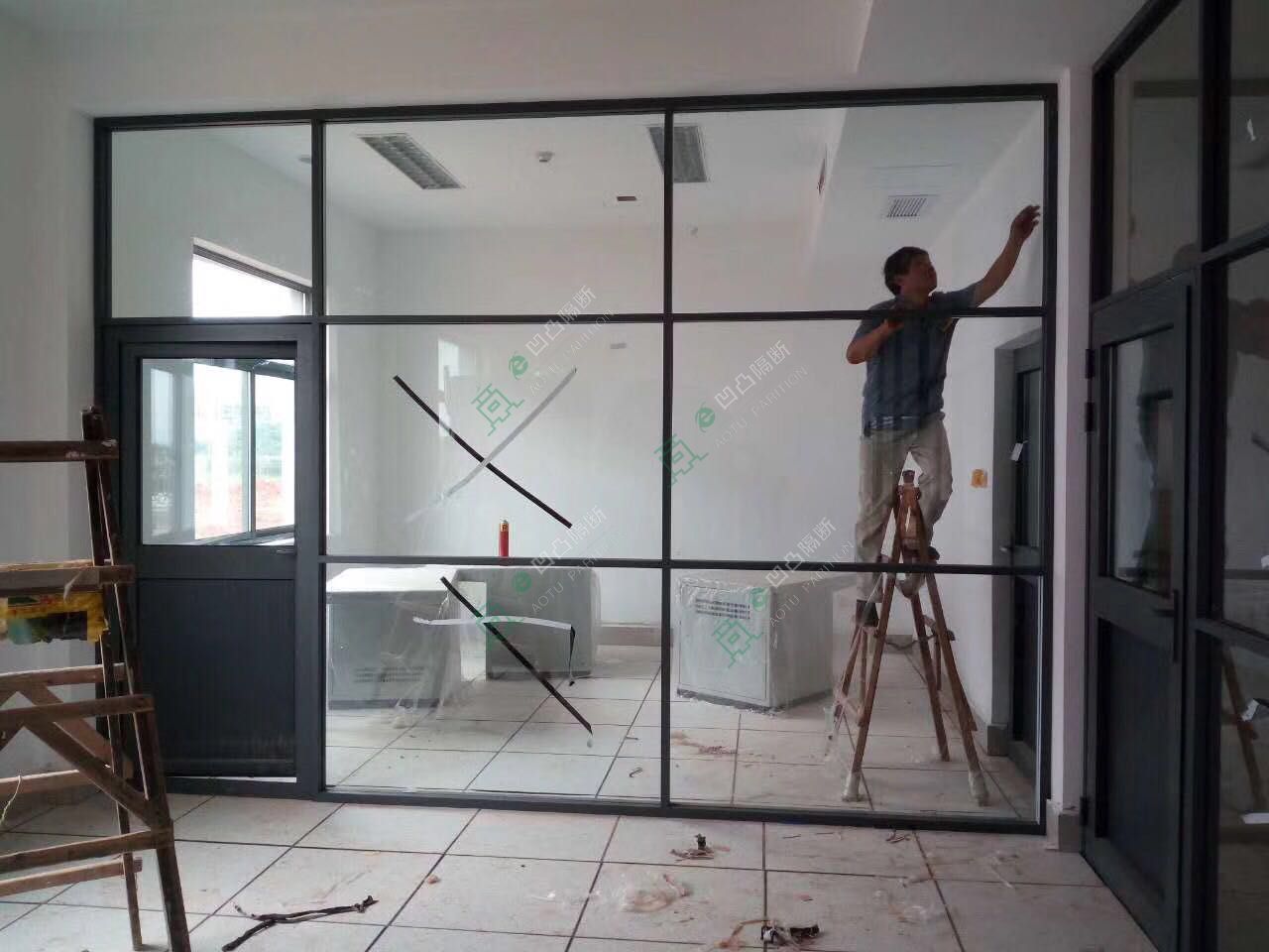3、玻璃隔斷玻璃和框架之間采用全封閉式膠條密封,隔音效果良好,隔音系數(shù)大于46分貝。
