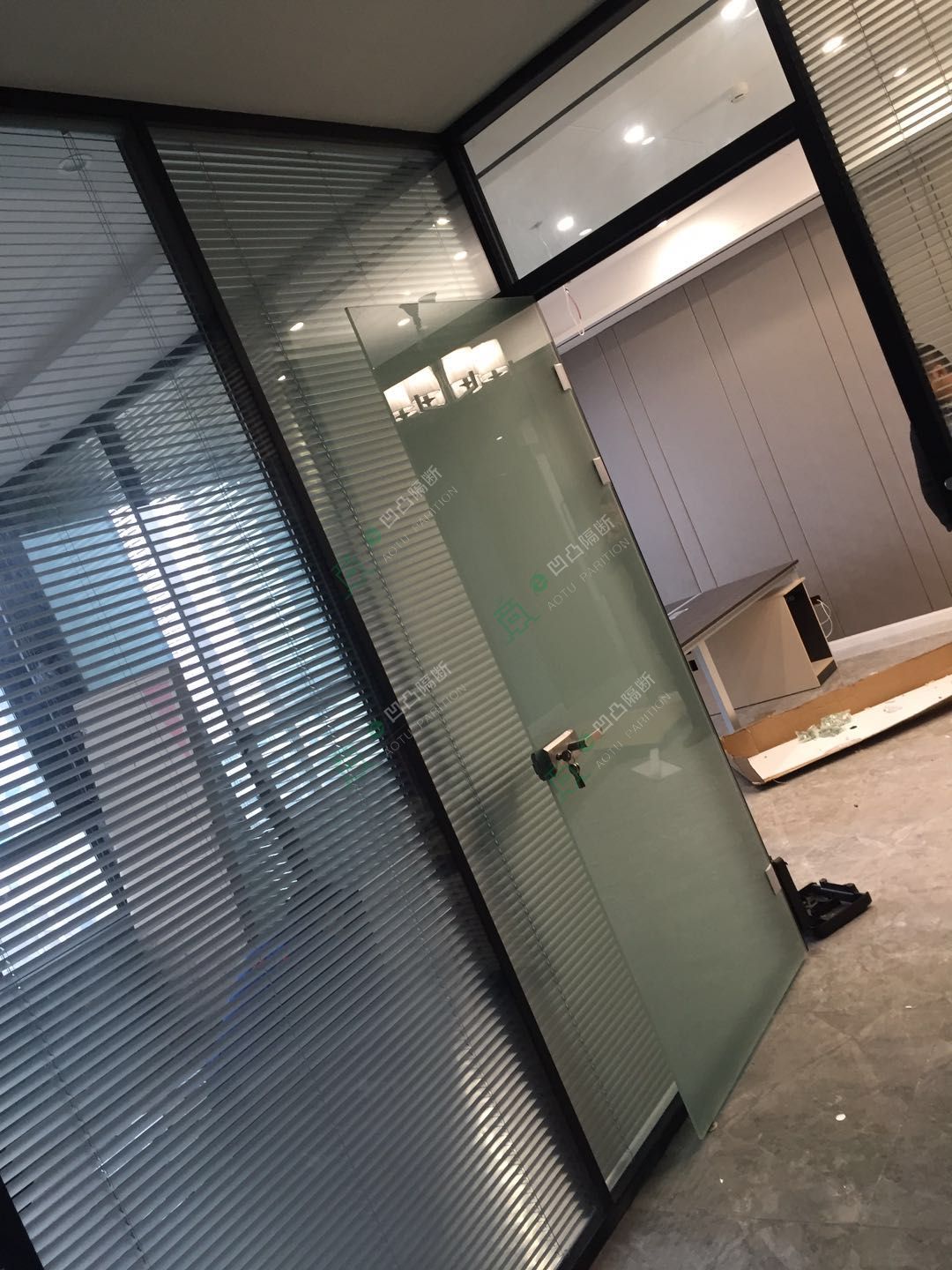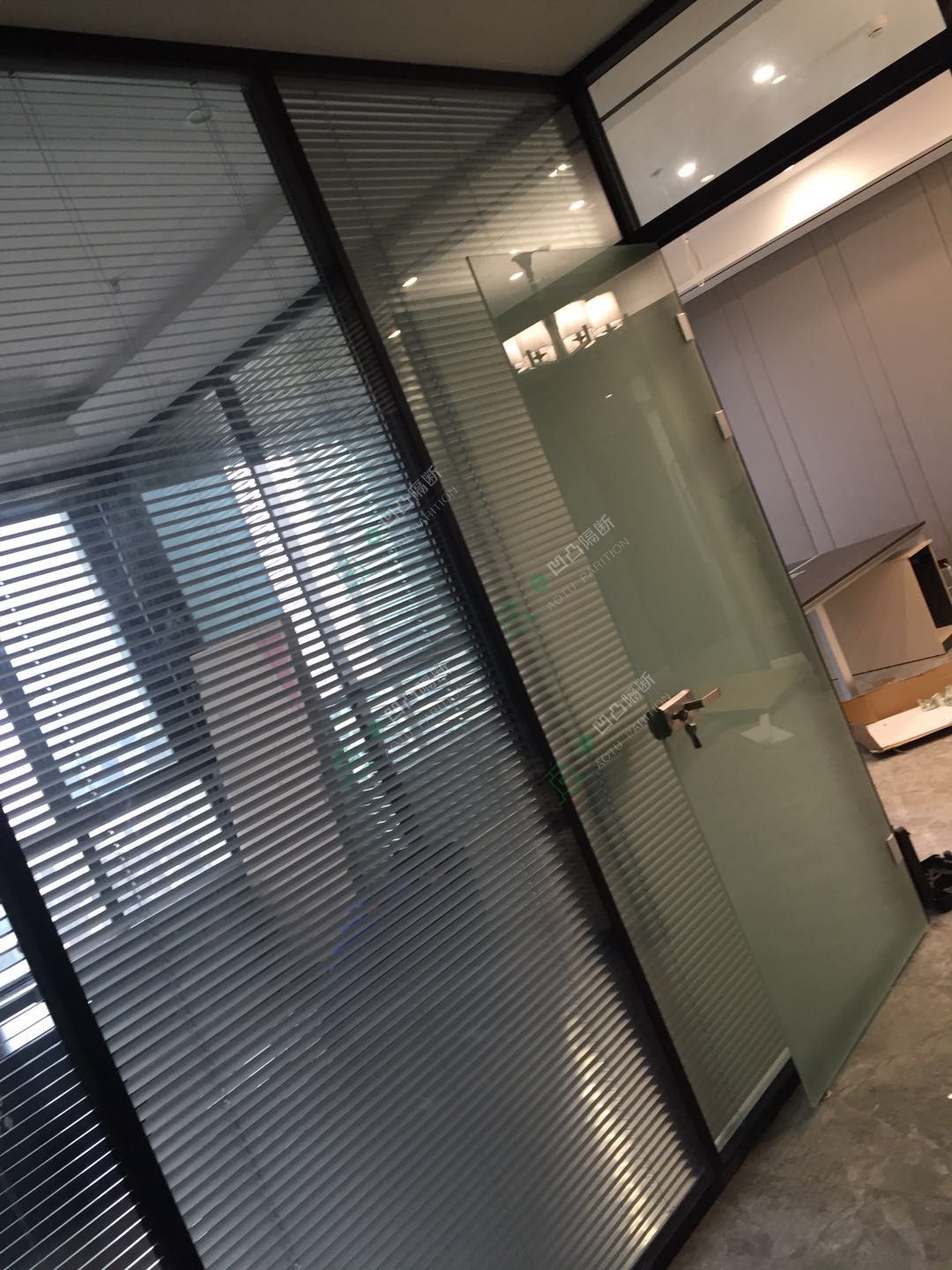 安徽凹凸隔斷裝飾工程有限公司承接安慶龍騰裝飾工程有限公司雙玻百葉玻璃隔斷工程