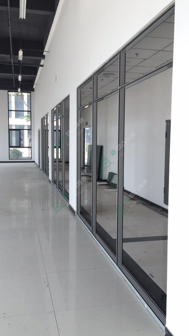 3、玻璃隔斷玻璃和框架之間采用全封閉式膠條密封,隔音效果良好,隔音系數(shù)大于46分貝。