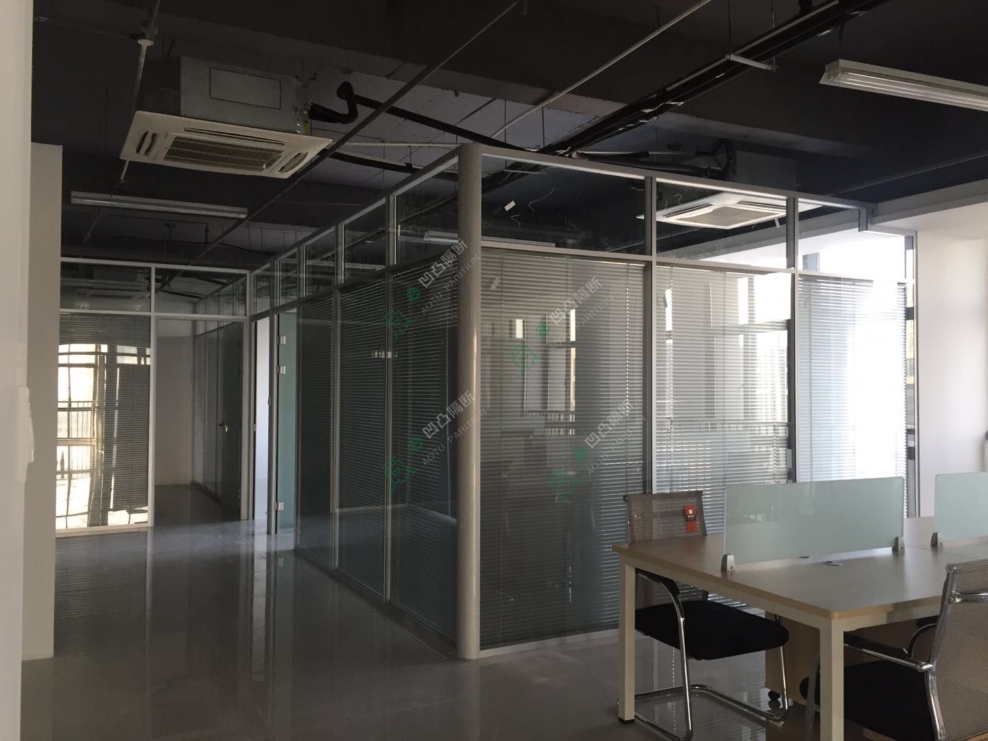 8、玻璃隔斷因墻體大部分采用鋁合金、玻璃、板材,后期的維護和清潔非常方便快捷。
