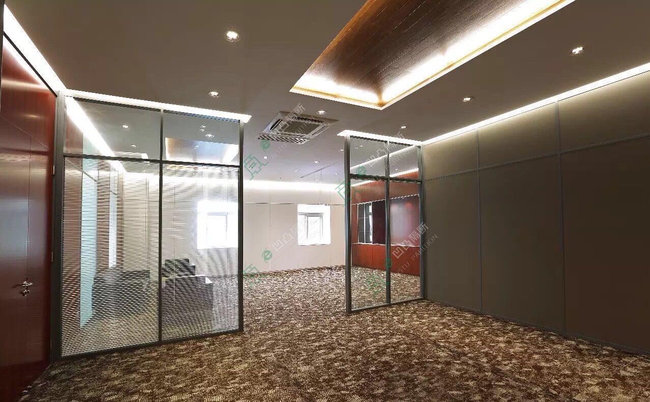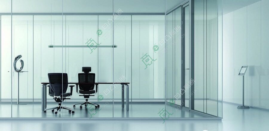 1、會議室、洽談室、設計室等類似區域可選用帶橫檔類型,雙面鋼化玻璃組成。因為這樣組合的隔音系數很高,符合以上場所的安靜和免干擾要求。橫檔設計能體現大氣,穩重的效果。